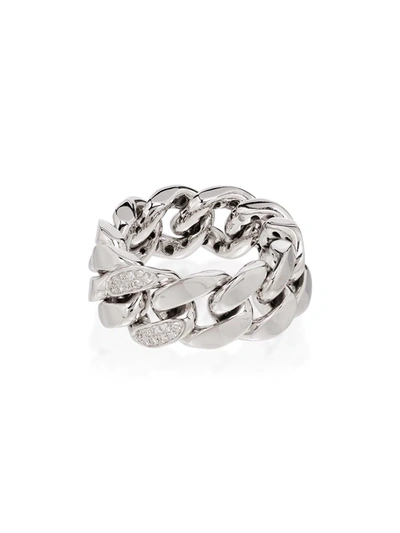 18kt White Gold Pavé Diamond Link Ring In Silver