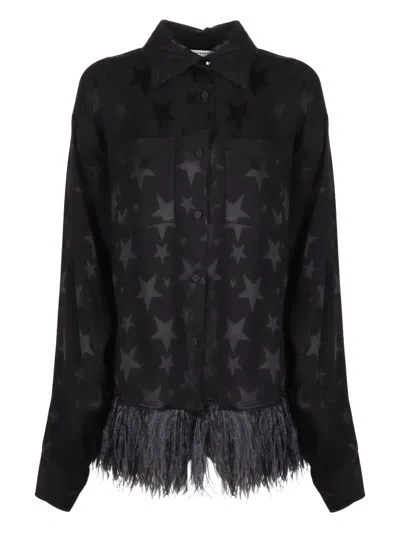 Feather-trimmed Ribbed Sweater In Black