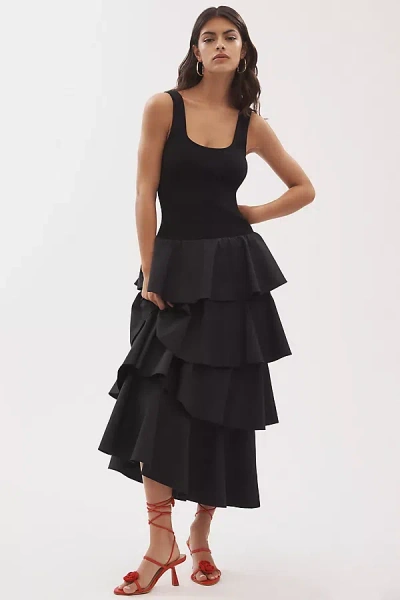 Aliah Scoop-neck Tiered Drop-waist Maxi Dress In Black