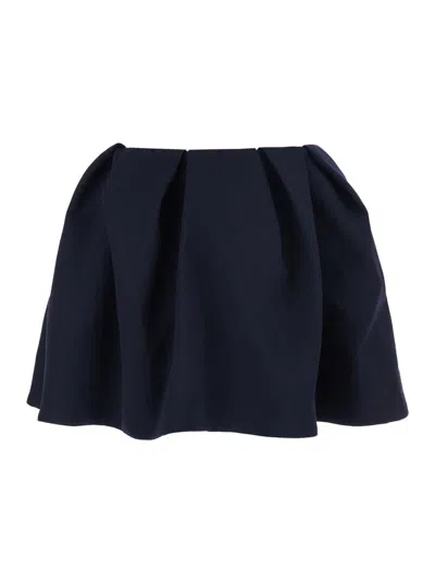 Blue Pleated Miniskirt With Rear Concealed Zip Closure In Wool Woman