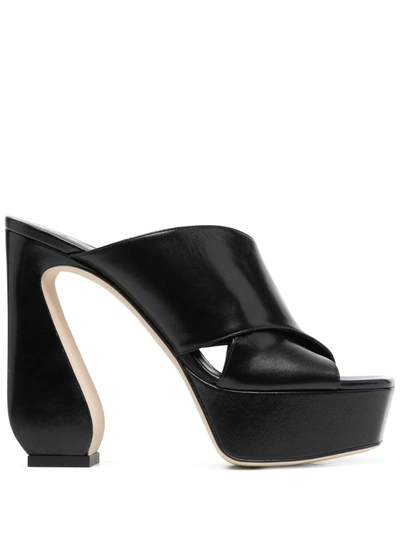 皮质水台式高跟凉鞋
