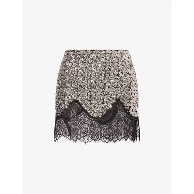 Womens Silver Witz Lace-trim Sequin Mini Skirt In Black