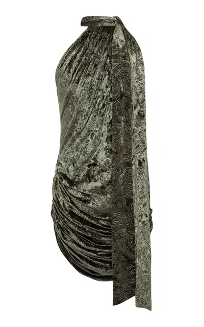 Franky Halter Velvet Mini Dress In Green