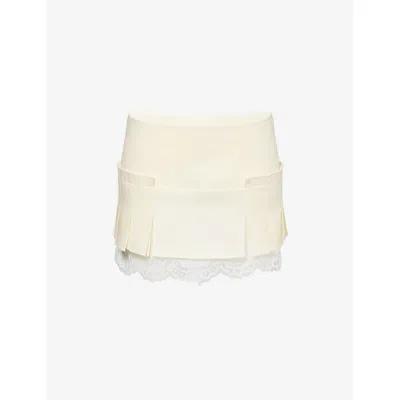 Womens Kleines Lace-trim Pleated Linen Mini Skirt Ecru