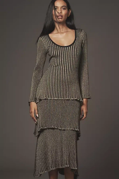 Tiered Shimmer Midi Dress In Black