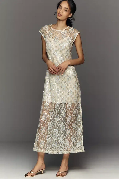 Sequin Sheer Overlay Midi Dress In Green