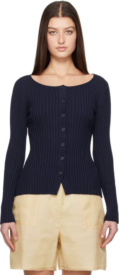 Navy Ribbed Kia Cardigan In Midnight