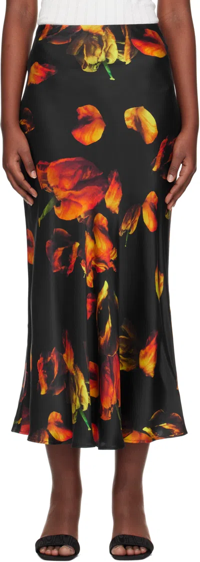 Multicolor Long Bias Cut Maxi Skirt In Tulipa Black