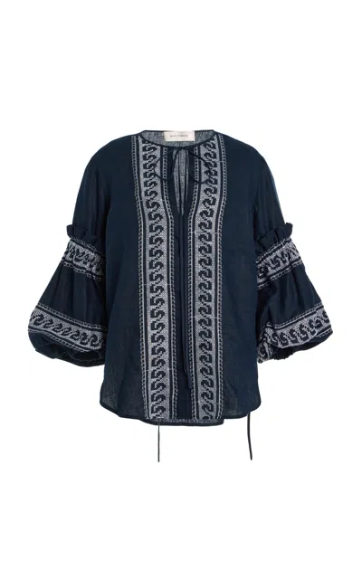 Lucaya Embroidered Linen-blend Blouse In Blue