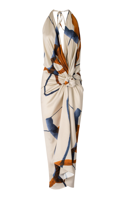 Sherry Abstract Halter Silk Maxi Dress In Multi