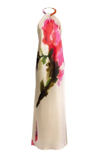 Exclusive Frances Open-back Printed Jersey Maxi Dress In Multi
