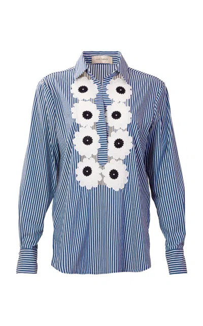 Karole Floral-embellished Cotton Shirt In Blue