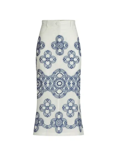 Bianca Floral Embroidered Fringe-hem Midi Skirt In Navy Embroidered