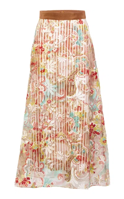 Layan Linen-cotton Midi Skirt In Multi
