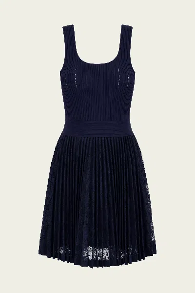 Ellis Knit Lace Mini Dress In Midnight In Blue