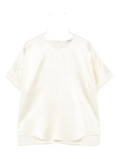 Satin-finish Long-sleeve Blouse With Draped Front In Blue