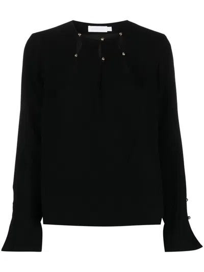 Long-sleeve Blouse With Stylish Tie Detail In Burgundy