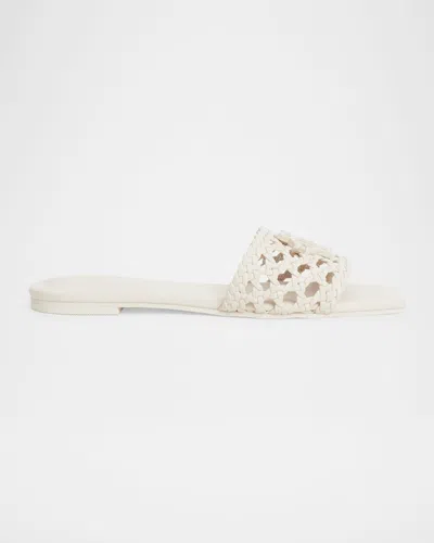Delphi Raffia Monogram Flat Slide Sandals In Natural