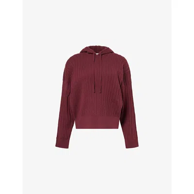 Womens Sangria Cable-knit Relaxed-fit Cotton And Cashmere Hoodie In Burgundy