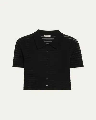 Larken Short-sleeve Sheer Stripe Cardigan In Black