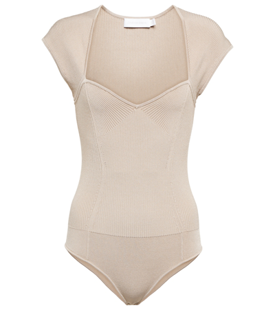 Barbara Ribbed-knit Bodysuit In White