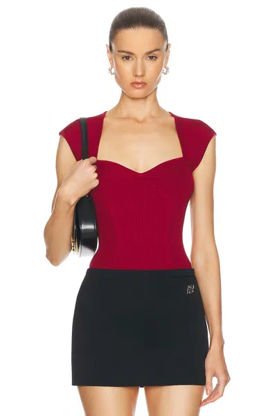 Barbara Ribbed-knit Bodysuit In Crimson