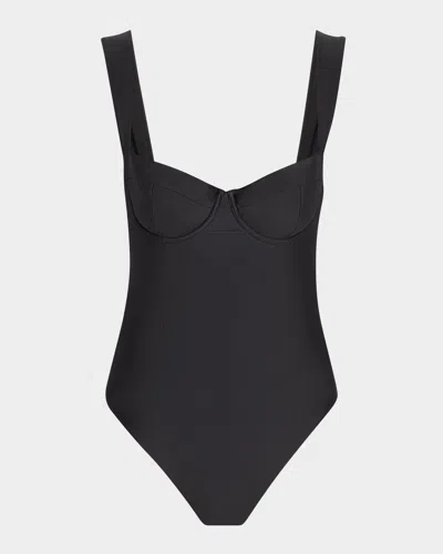 Noa Belted Bustier One Piece Swimsuit In Black