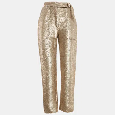 Pre-owned Gold Sequin Waist Tie-up Belt Detail Trousers S