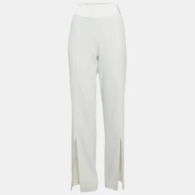 Pre-owned Ivory Satin Trim Crepe Flared Trousers M In White