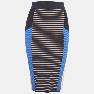 Pre-owned Multicolor Patterned Knit Midi Pencil Skirt S