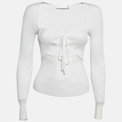 Pre-owned White Rib Knit Cut-out Alexia Top S