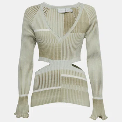 Pre-owned Beige Peyton Striped Rib Knit Cut-out Top L In Sand