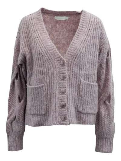 Pre-owned Lavender Faux Fur Buttoned Cardigan M In Purple