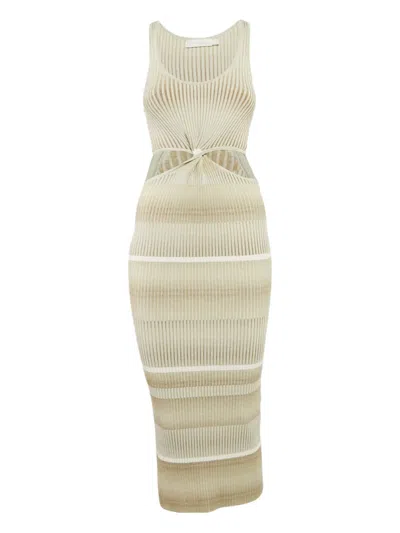 Pre-owned Grey Rib Knit Cut-out Midi Dress S