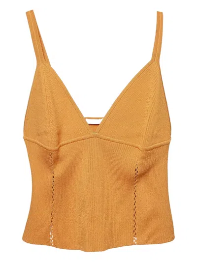 Pre-owned Off White Straw Trim Knit Sleeveless Midi Dress M