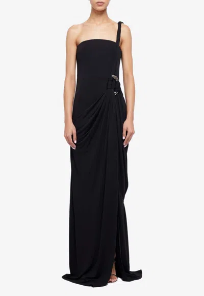 Draped Jersey Maxi Dress With Long Sleeves In Black