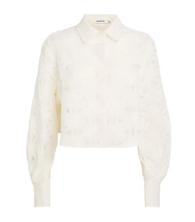 Marjorie Cropped Floral Lace Camp Shirt In White