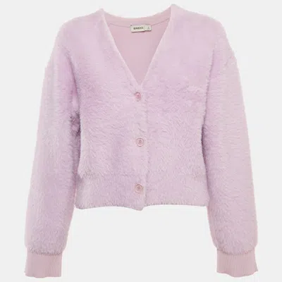 Pre-owned Lavender Faux Fur Buttoned Cardigan M In Purple