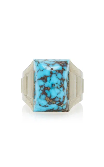 Art Deco 18k White Gold Turquoise Ring In Blue