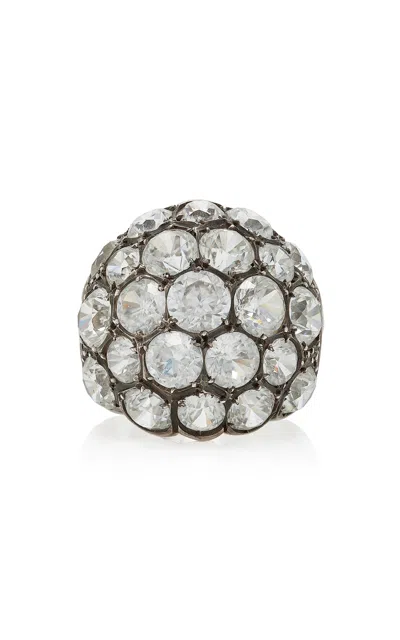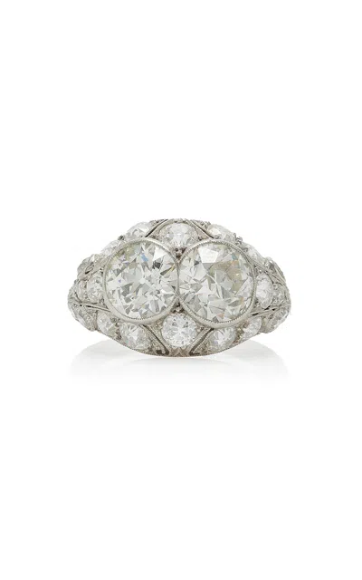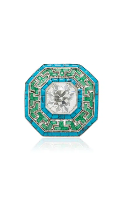 Platinum Diamond; Emerald; Turquoise Ring In Green