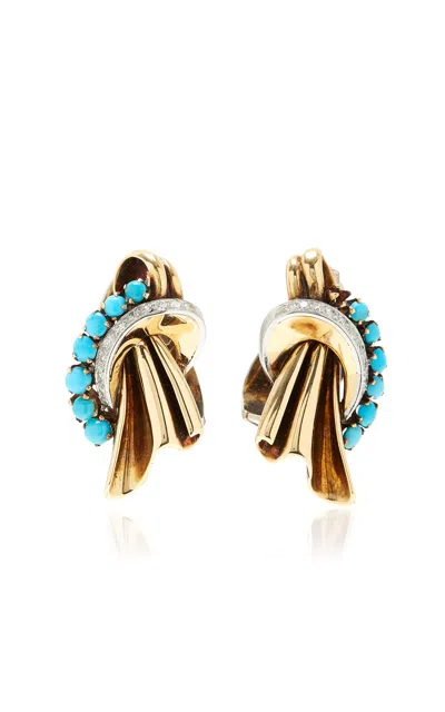Retro Suite 18k Yellow Gold Turquoise; Diamond Brooch