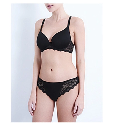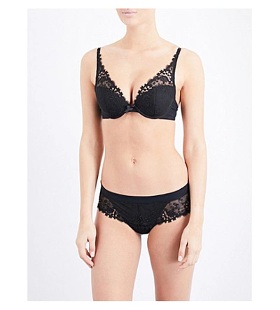 Womens Black Caresse 3d Spacer And Stretch-lace Underwired Plunge Bra
