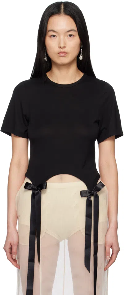 Fitted Black Long-sleeve Top With Satin Ribbon Accents