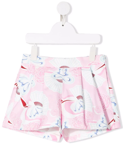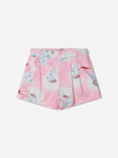 Kids' Girls Cotton Floral Fan Print Shorts 1 Yrs Pink