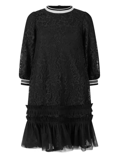 Kids' Ruffled Floral-lace Dress In Black