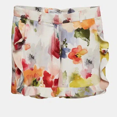 Pre-owned Multicolor Floral Print Crepe Ruffled Shorts S