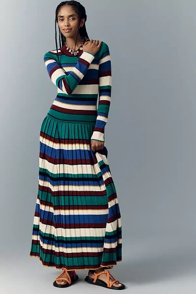 Spiral Knit Fringed Sleeveless Midi Dress In Brown