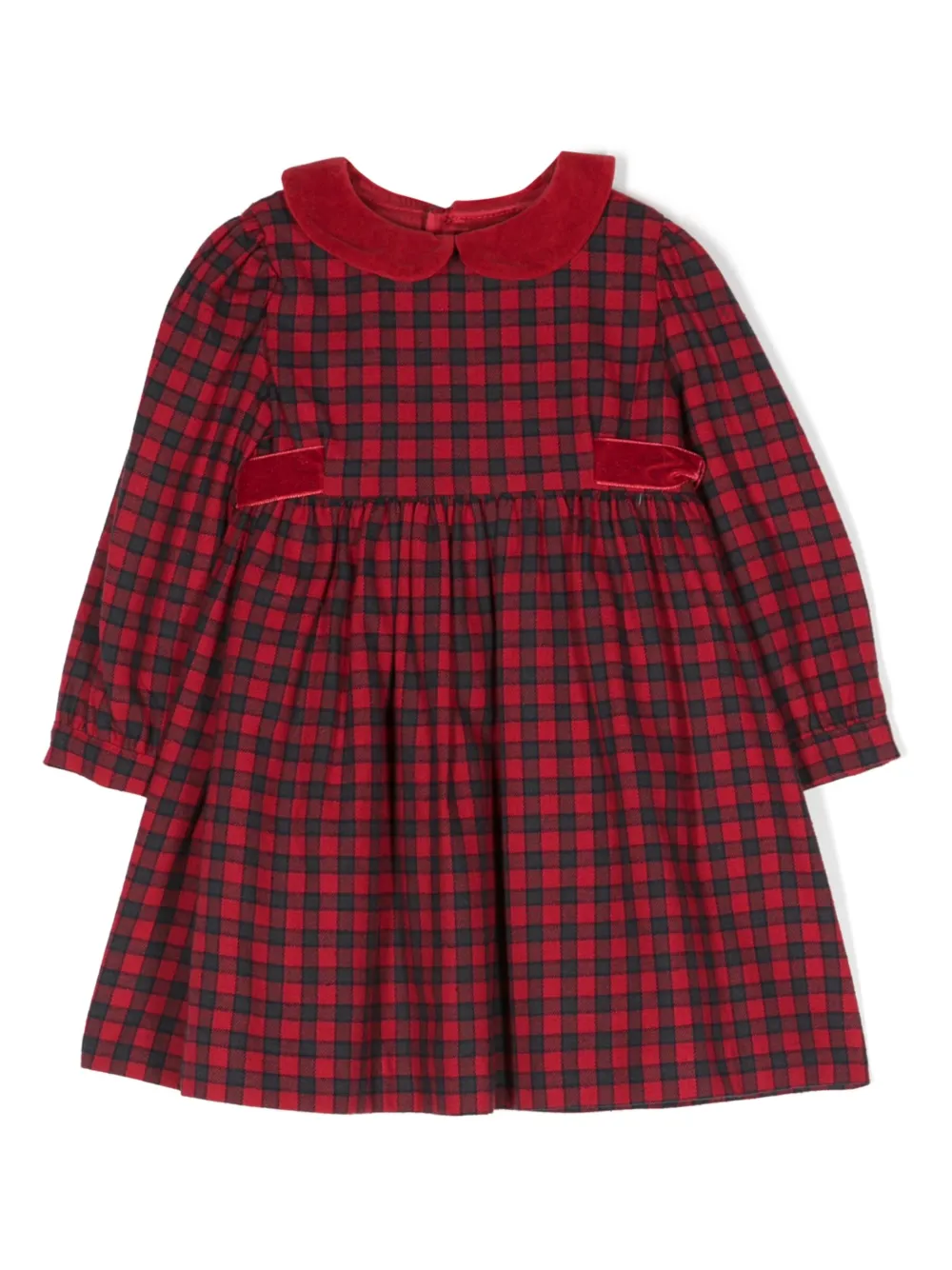 蝴蝶结细节格纹伞形连衣裙