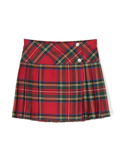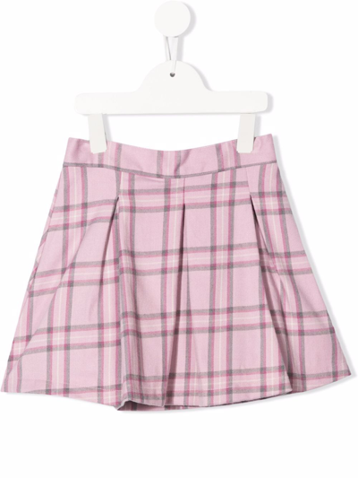 Kids' Check-pattern Flared Skirt In 粉色