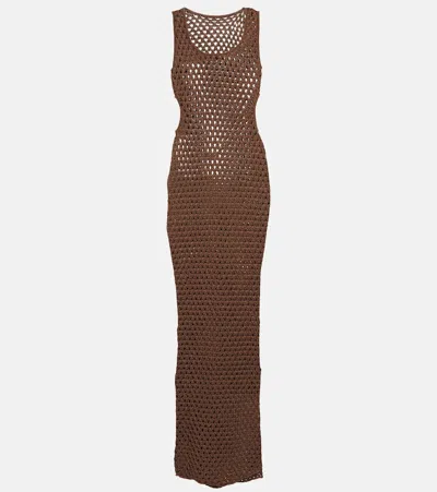 Sol Gathered Embellished Shell Midi Dress In Brown